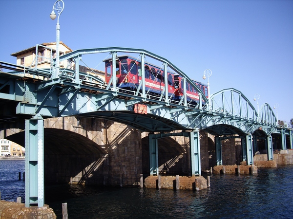 TDSのディズニーシー・エレクトリック・レールウェイのトラス橋です。Headroom 13ftの注意書きがあります。桁下約4mということですが、ここをくぐるのは基本的にトランジットスチーマーラインのボートだけ。アメリカンウォーターフロントの港に停泊している船のほとんどは通行不可だと思われます。