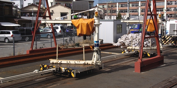 よく見かけるのは、このようなクレーン部分だけが台車に乗ったタイプです。画像はTOBU RT No.5