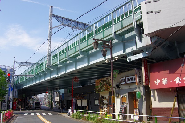 志村坂上-志村三丁目間にある、新志村第3架道橋です。直線の架道橋を2つ使ってカーブしています。
