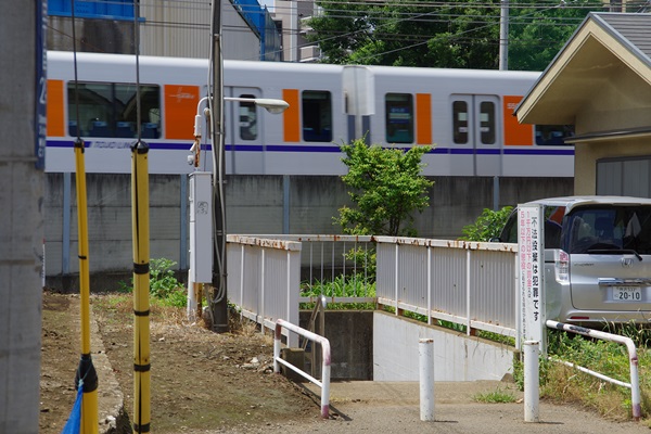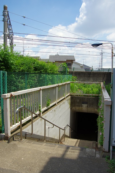 東武東上線成増-和光市間、東京メトロ有楽町・副都心線地下鉄成増-和光市間にある谷中隧道(歩行者専用)です。このあたりは標高が高く、階段で下りていきます。