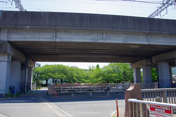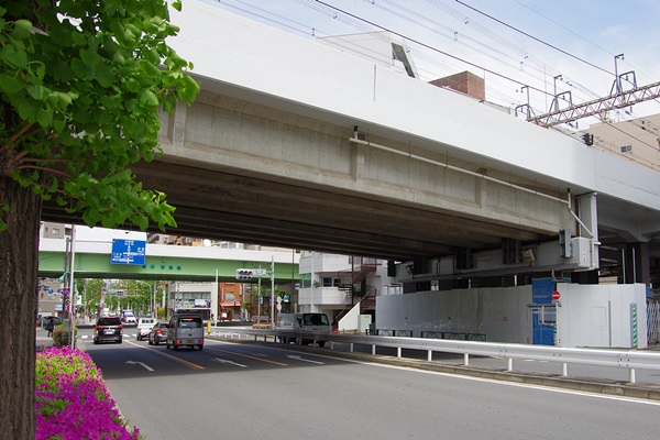 京王線幡ヶ谷-笹塚間にある、幡ヶ谷第3架道橋です。電柱も立てられるほど高さがあります。