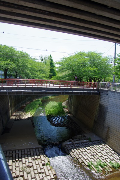 一番上が池袋線、その下が道路橋(正面に見えるのは薬師堂橋)、一番下が石神井川です。