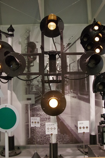 京都鉄道博物館で保存されているハンプ用入換合図器です。上下2灯は前進です。