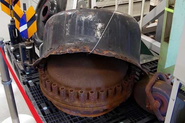鉄道博物館で展示されている9600形蒸気機関車の蒸気溜メとカバーです。ドイツ軍のヘルメットかと思いましたが、なかなかイケてる展示方法です。説明文も入れてほしいわ。