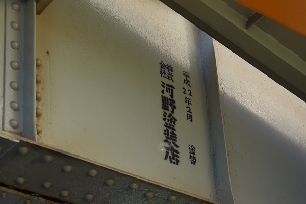 私鉄の架道橋には橋名が道路側に書かれていないことが多く、この馬場架道橋には塗装者(河野塗装店)しかないようです。