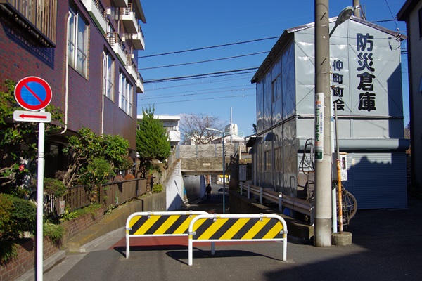 東武東上線の大山-中板橋間にある仲町架道橋です。もともとは東19号踏切(現存しない)だったようです。車両は通れません。