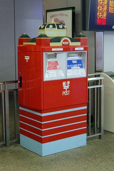 東京駅構内、丸の内側にあるポストです。駅舎の屋根がデザインされています。