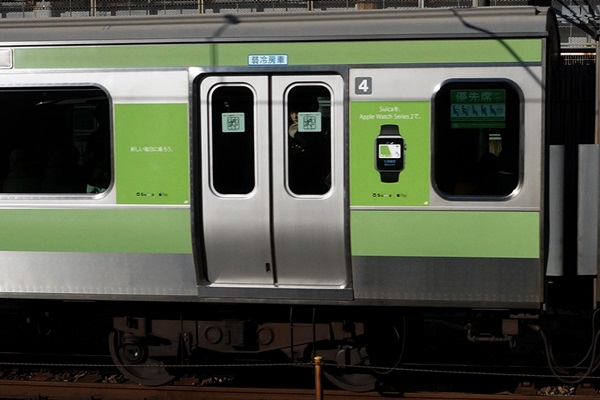 山手線547編成、「Suica Apple pay」ラッピング広告車です。