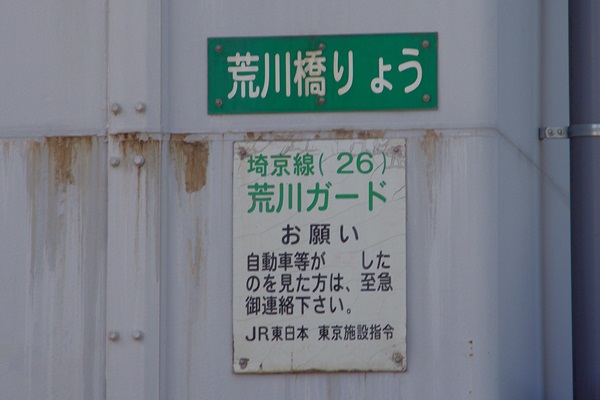 次は当然、埼京線(22) 第2舟渡架道橋。「第2舟渡ガード」というのは、緊急時に言ってもらいたい簡単な言い方。しかし、肝心の赤文字が劣化していて読めない。よくあることですが。