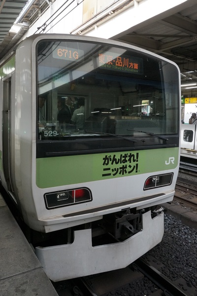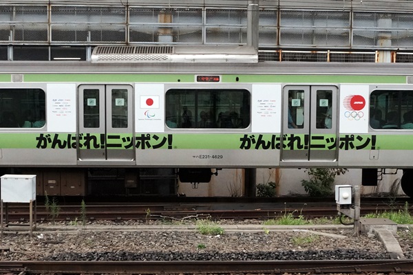 山手線E231系トウ529編成、がんばれ!ニッポン!号です。側面も内装もオリンピック仕様になっています。