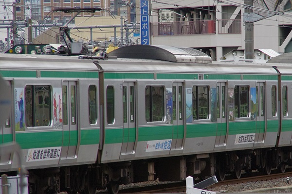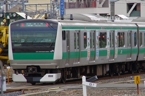 山手線E231系トウ535編成「新幹線北海道上陸!」ラッピング広告車です。