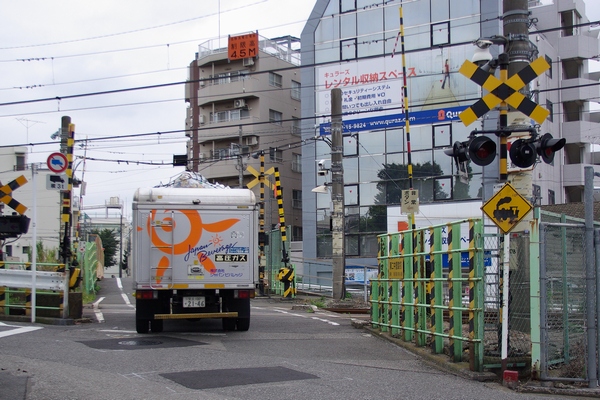 もうひとつ。確かに電車は通る踏切ですが、第3軌条なのでパンタグラフはないという例。