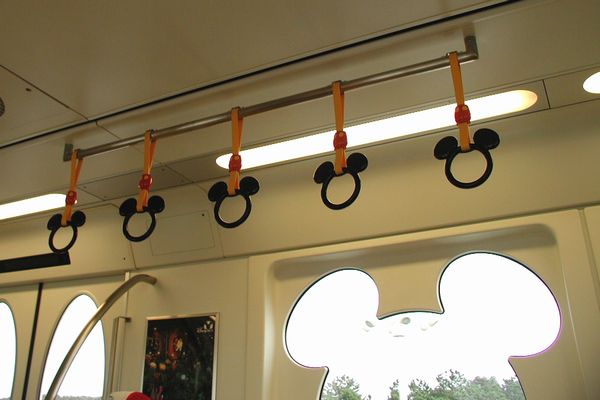 ちなみに、ディズニーリゾートラインのつり革は持ち手部分の合成樹脂そのものがミッキーです。
