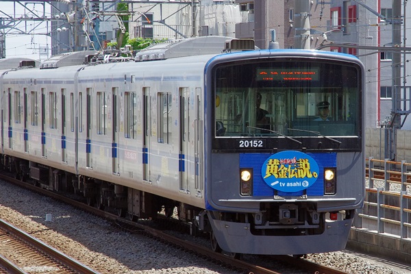 西武20000系20152F、テレビ朝日「いきなり!黄金伝説」ラッピング広告車です。