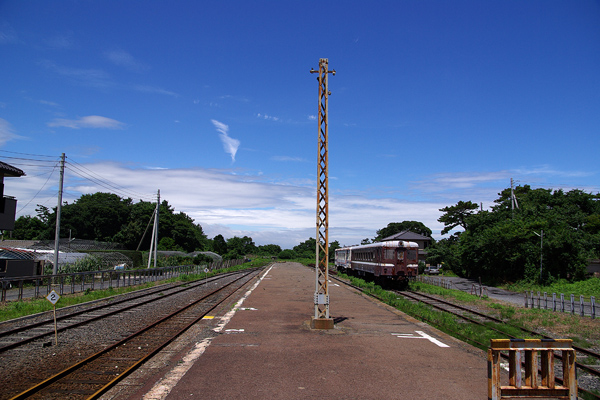 茨城交通湊線の終着駅・阿字ヶ浦は無人駅。この先に太平洋が広がっています。